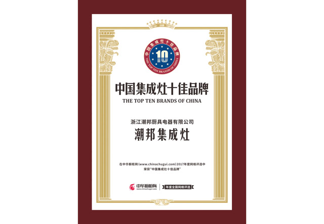 潮邦集成灶榮獲中國集成灶十佳品牌