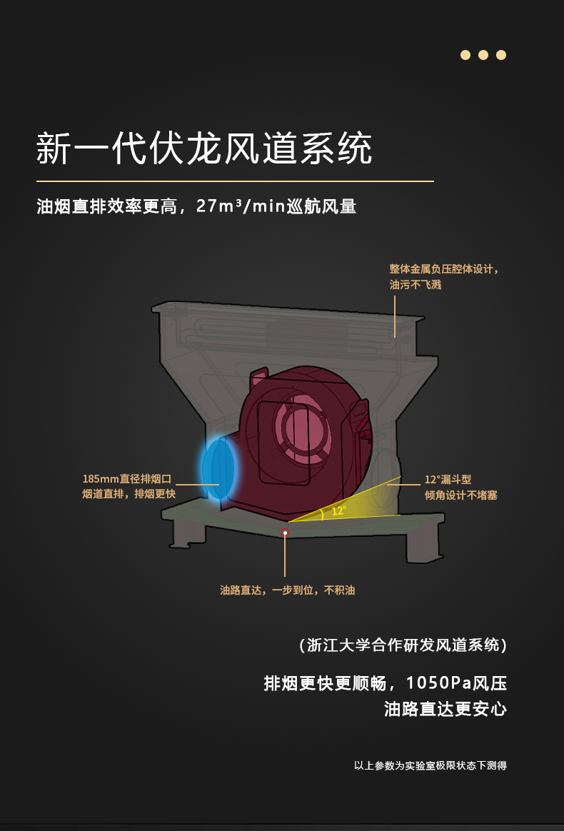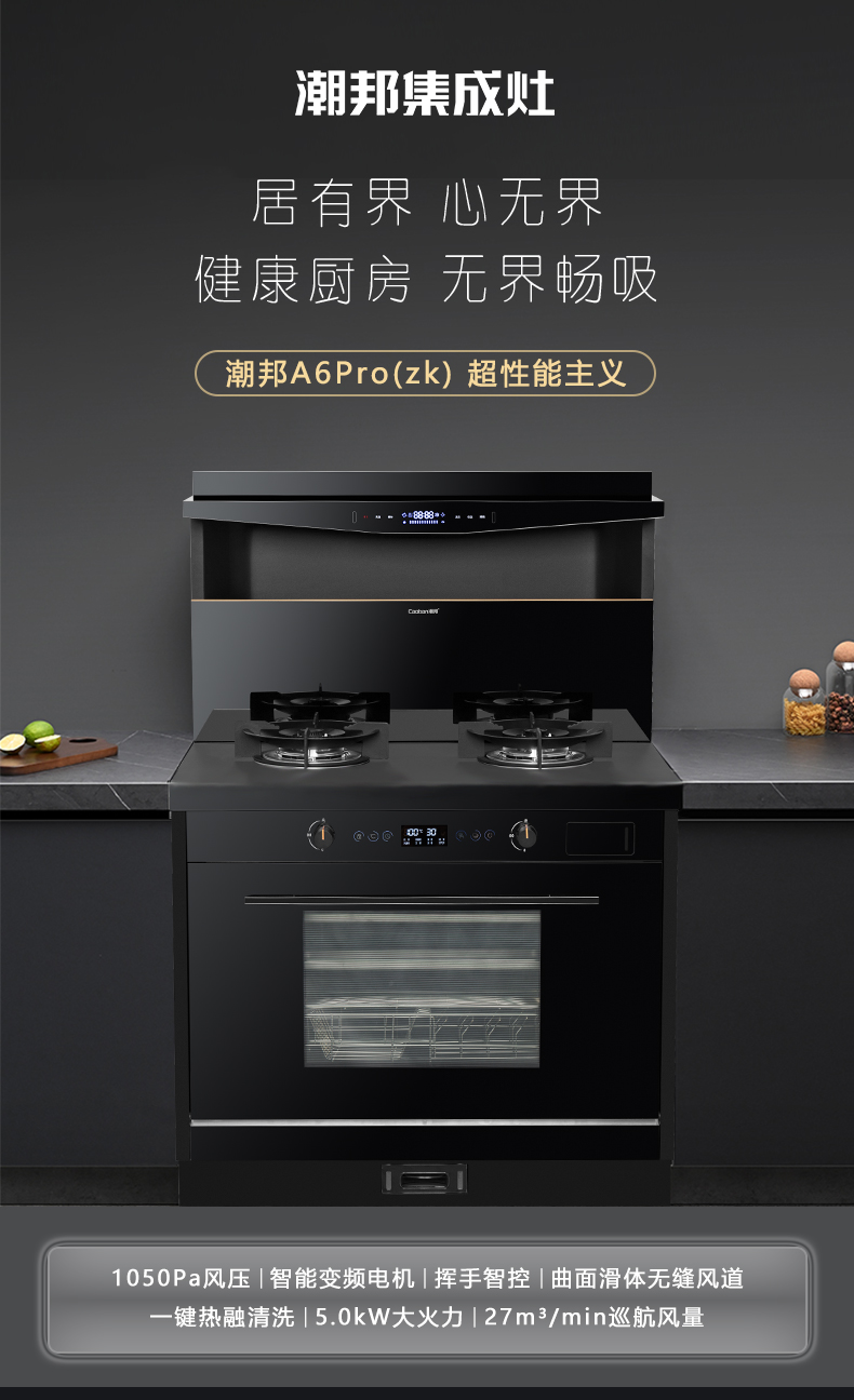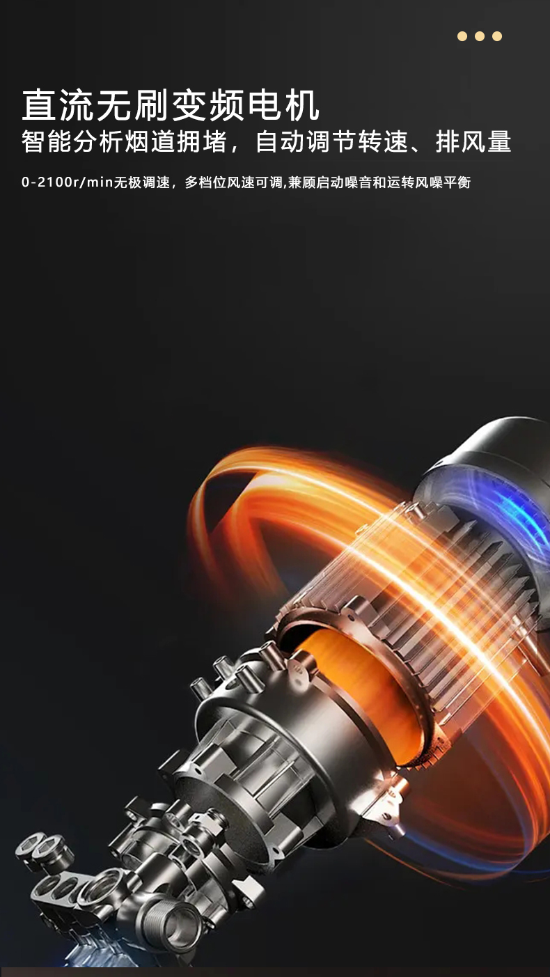 1050Pa風壓,智能變頻電機,揮手智控,曲面滑體無縫風道,一體瓷膜內膽,一鍵熱融清洗,5kW大火力
