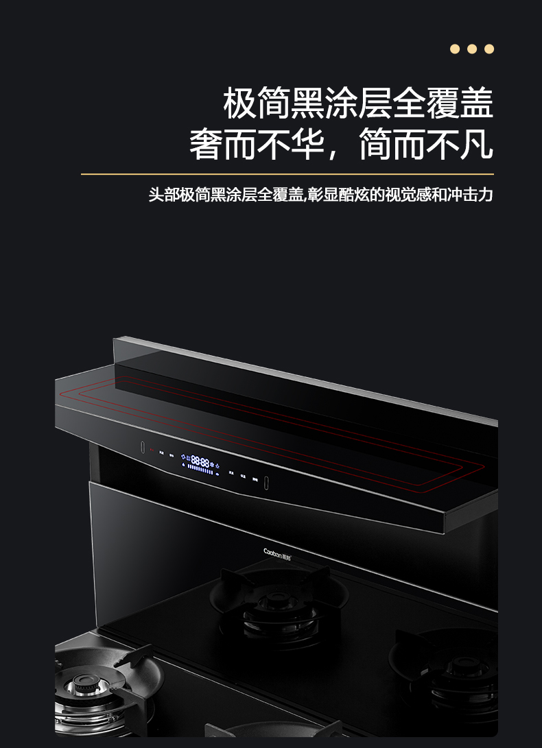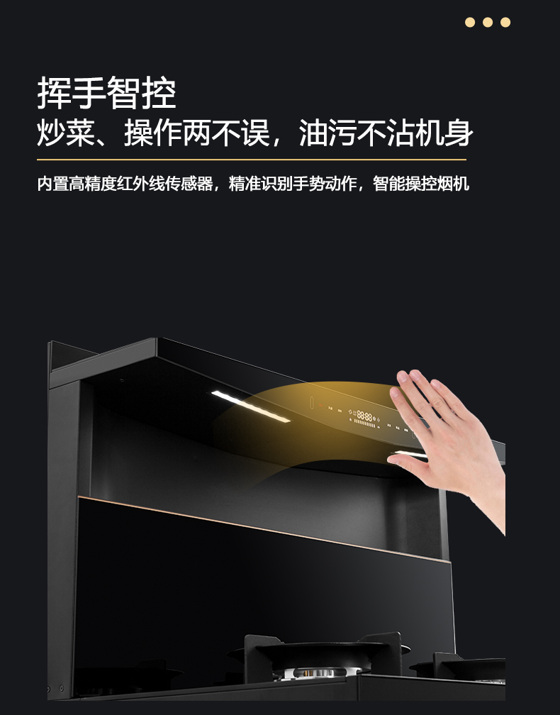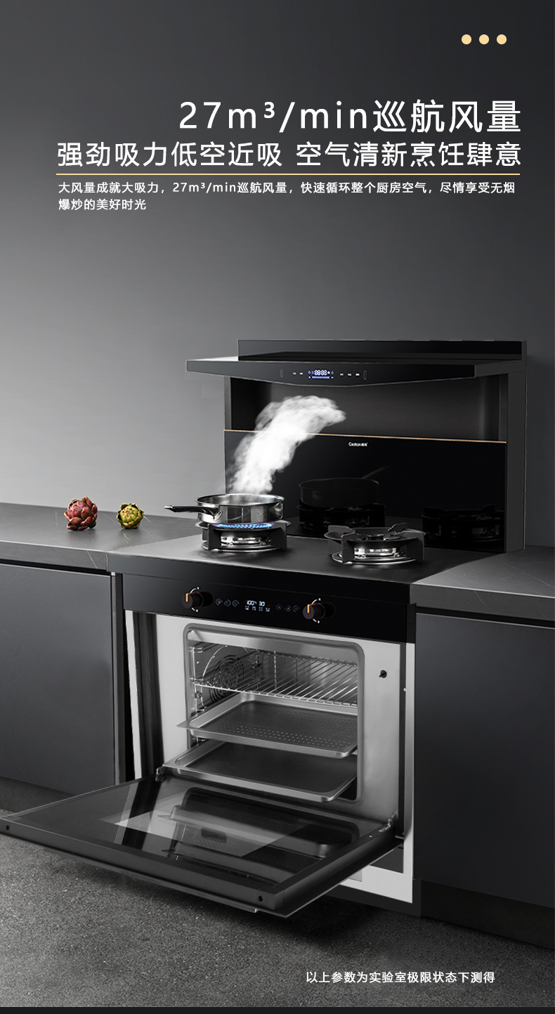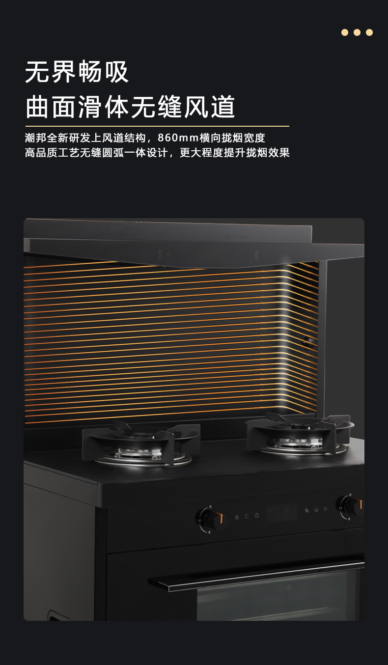 1050Pa風壓,智能變頻電機,揮手智控,曲面滑體無縫風道,一體瓷膜內膽,一鍵熱融清洗,5kW大火力