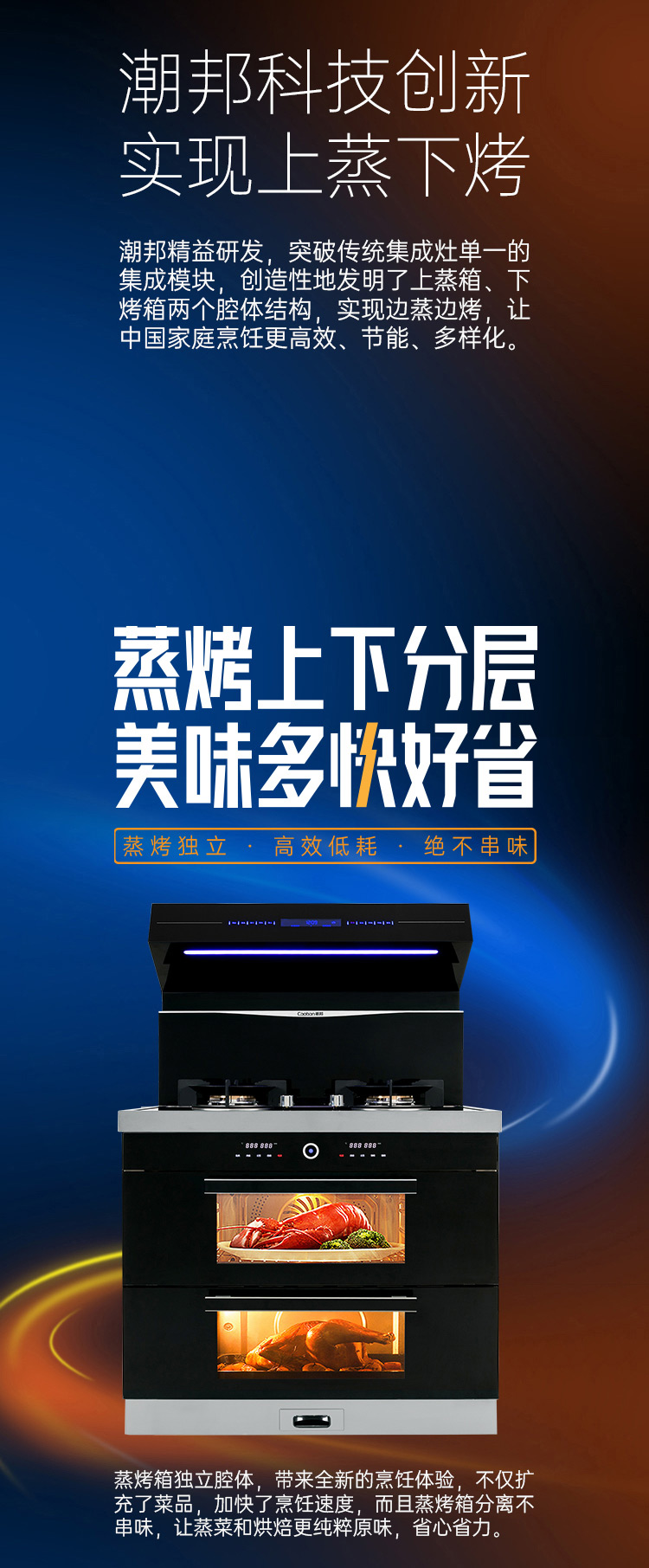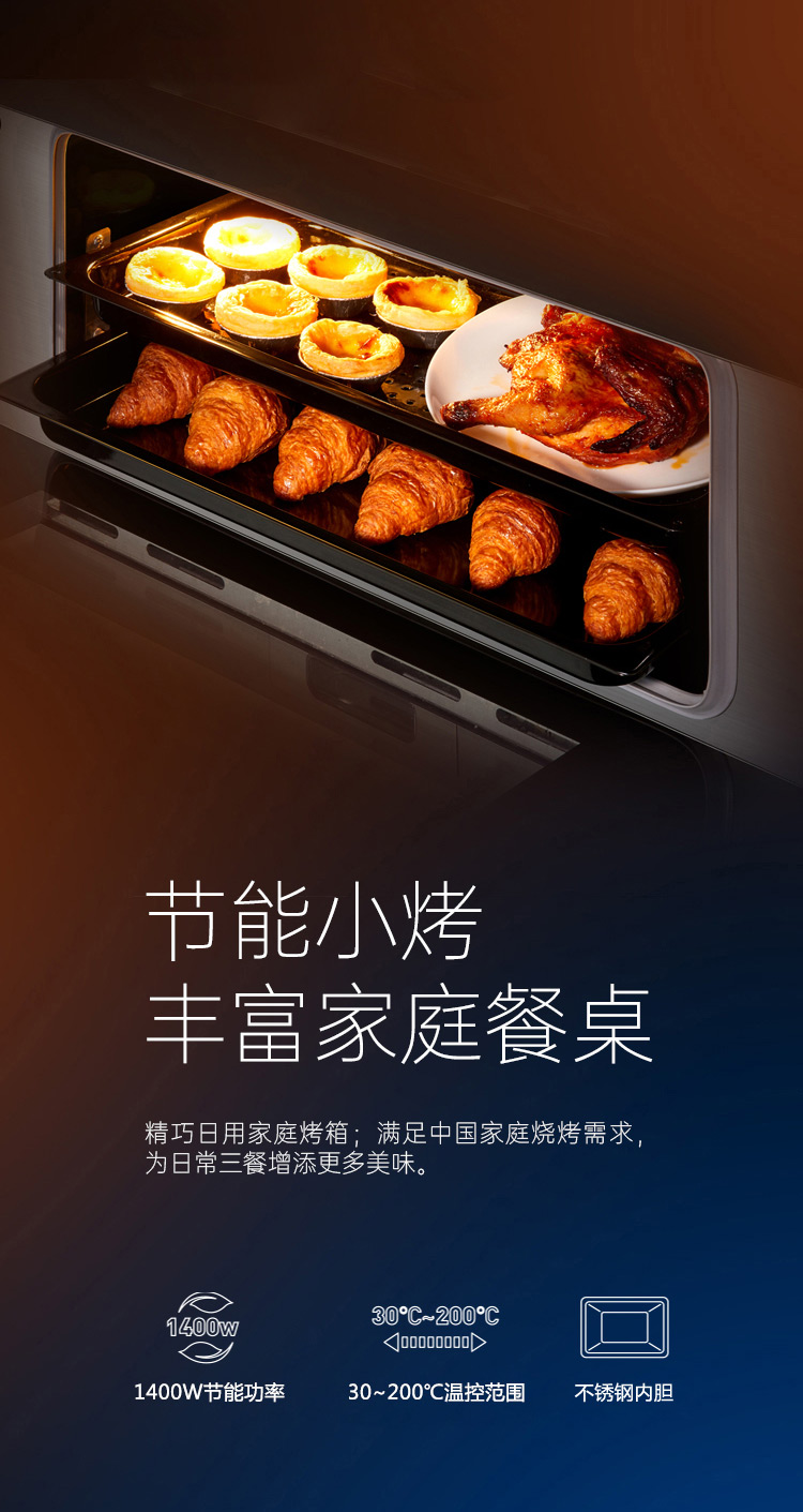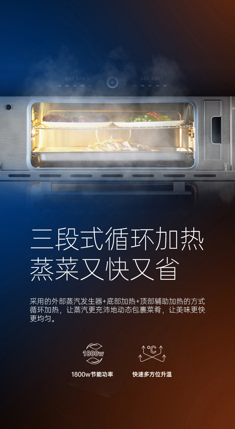 上蒸箱、下烤箱,實現邊蒸邊烤。更高效,更節能。